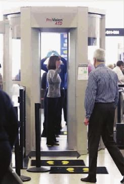 除了上面所見的那種普通的安檢門之外,現在國內外的某些機場還會配備人體掃描儀。人體掃描儀能對人體實行比安檢門更詳細的檢查。人體掃描儀利用的也是一種電磁波。這種電磁波是一種毫米波段的遠紅外的電磁波。這個波長的電磁波單位時間內振動頻率比可見光還低,輻射強度很小,幾乎不會對人體造成危害,成為人體掃描儀的理想波段。